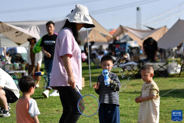 4月16日,小朋友在长沙市开福区湘江畔玩耍。 连日来,湖南省长沙市春光明媚、微风和煦,不少市民来到湘江畔露营休闲,乐享春光。 新华社记者 陈振海 摄 |