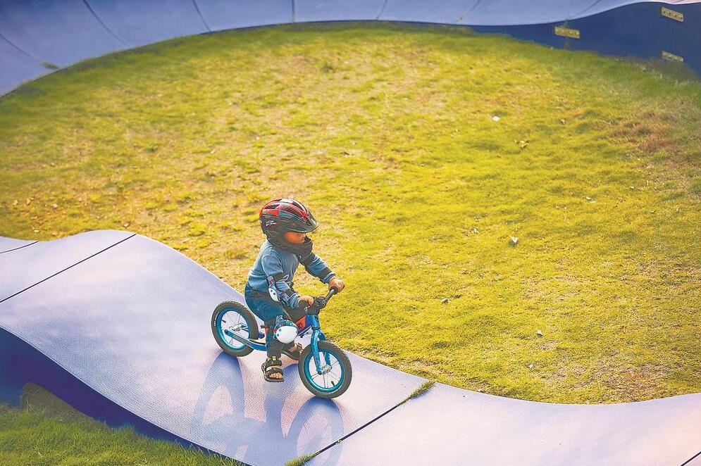 11日,在福州市鼓楼区西河智慧体育公园内,一群儿童正在进行平衡车训练,感受体育运动带来的乐趣。
