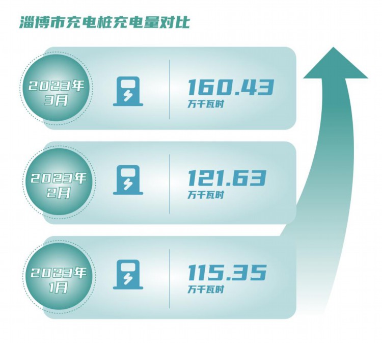 淄博市前3个月充电桩充电量对比。国网淄博供电公司制图