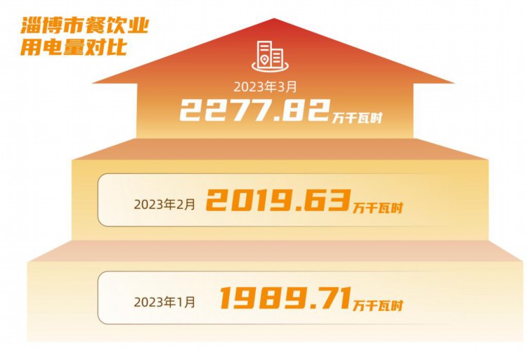 淄博市餐饮业前3个月用电量对比。国网淄博供电公司制图