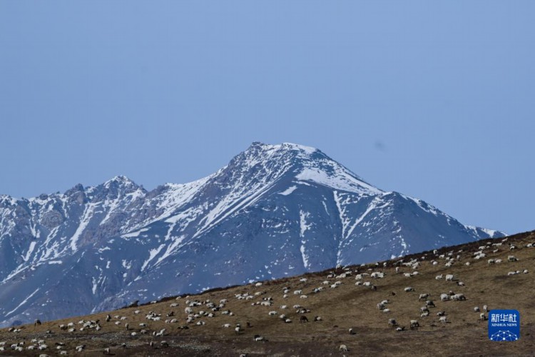 4月17日,在青海省海北藏族自治州门源回族自治县皇城蒙古族乡,一群藏羊在祁连山腹地的草场上活动。 青海省是我国五大牧区之一。近年来,青海省贯彻生态优先发展理念,通过调整产业结构,构建“划区轮牧、科学养畜、草畜平衡、协调发展”为主的生态畜牧业发展格局,积极打造绿色有机农畜产品输出地,促进乡村振兴、生态保护、生产转型和农牧民增收。 新华社记者 张龙 摄