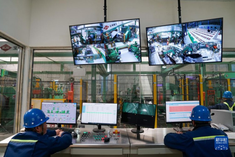 4月19日,工作人员在监控室内监测生产线运行情况。