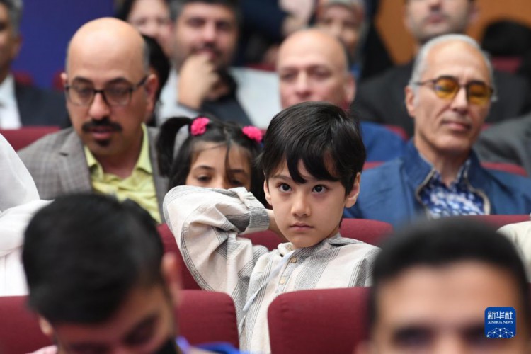 这是4月20日在伊朗首都德黑兰青少年智育中心礼堂拍摄的天宫对话——神舟十五号航天员乘组与上海合作组织国家青少年问答活动的伊朗会场现场。新华社记者 沙达提 摄