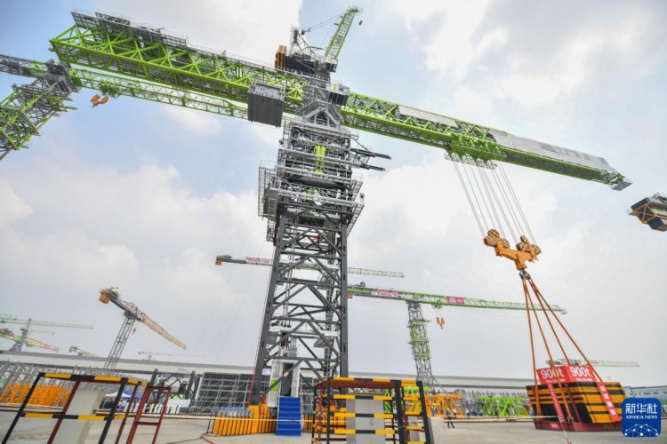 这是4月20日拍摄的中联重科R20000-720塔式起重机。 当日,中联重科R20000-720塔式起重机在位于湖南省常德市鼎城区的中联重科建筑起重机工业园下线并交付。该起重机最大起重量720吨,最大起升高度400米,主要应用于重大工程建设领域。 新华社记者 陈泽国 摄