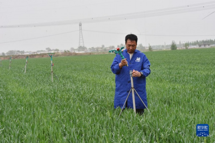 4月20日,张战强在检修自动喷灌设备。 张战强和苏丽华夫妇是河北省邢台市南和区贾宋镇人,二人2010年开了一家农资门市,经营种子、化肥和农药等。后来,随着进城务工人员增多,他们开始帮助村民打理农田,走上了土地托管的路子。十多年里,夫妻二人相继购置了收割机、拖拉机、装载机、自走式喷药机、植保无人机等农业设备,并不断扩大业务范围。目前,夫妻俩将周边村民们托管的6000多亩土地打理得井井有条,成了当地有名的“田保姆”。 新华社记者 朱旭东 摄