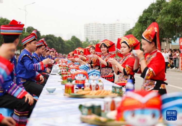 当日,上思文化旅游节在广西壮族自治区防城港市上思县开幕,活动现场举行了舞鹿表演、竹竿舞、长桌宴等活动,让居民和游客感受当地传统习俗,喜迎传统节日“三月三”。