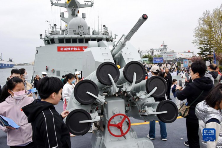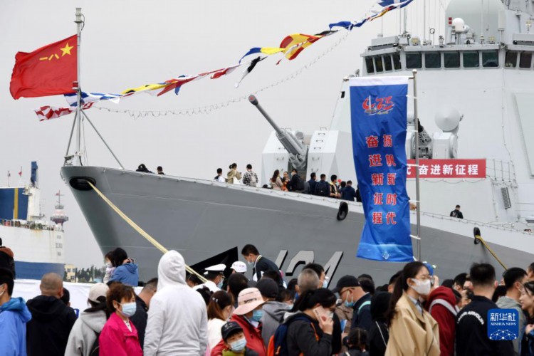 4月22日,观众排队准备参观导弹驱逐舰开封舰。新华社记者 李紫恒 摄