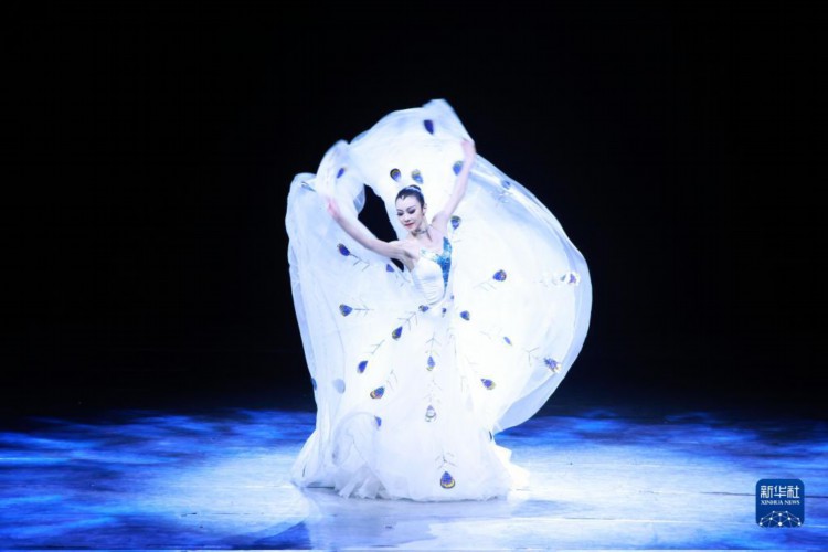 4月22日,演员在公众开放日上为观众表演孔雀舞。 当日, “请你跟我一起来”中央民族歌舞团2023年公众开放日活动在北京举行。本次公众开放日以“春”为主题,面向社会公众发出邀请,近距离感受艺术精品的独特魅力,倾听台前幕后的感人故事,以文化人、以艺通心。新华社记者 潘旭 摄