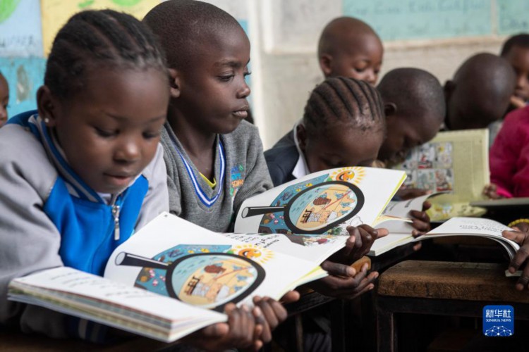 4月19日,在肯尼亚内罗毕马萨雷贫民区的一所小学,孩子们在教室读书。 马萨雷贫民区位于肯尼亚首都内罗毕东部,是肯尼亚第二大贫民区。2014年,刘宜孟翰等几名中国青年在此创立了造梦公益组织,他们穿梭于贫民区的街巷之中,为帮助当地青少年实现梦想而奔波。在中国一些基金会和个人捐款资助下,多年来,造梦公益组织的中国青年与来自全世界的志愿者一道,在马萨雷贫民区援建、修缮了多所学校。在第28个世界读书日来临之际,这里的小学获赠了一批图书。通过开展读书活动,刘宜孟翰和老师们希望加强和鼓励学生的阅读文化,爱上读书。 新华社记者 李亚辉 摄