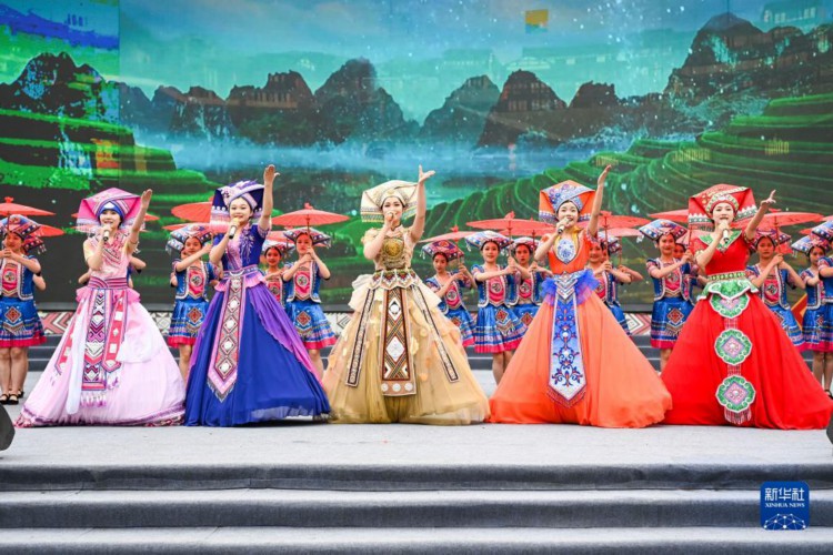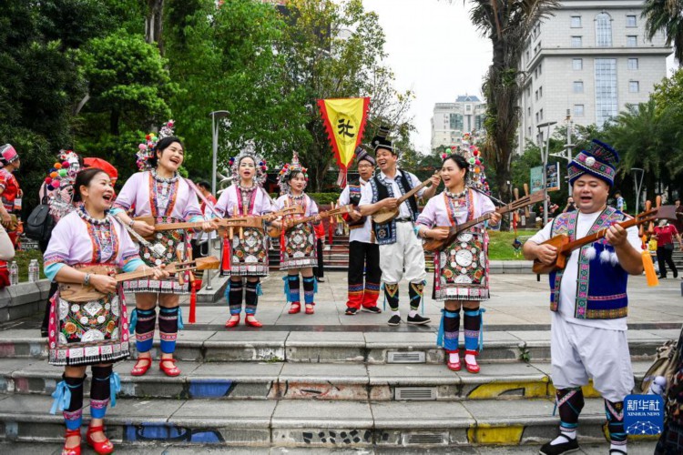 4月22日,在中国—东盟(南宁)非物质文化遗产周开幕现场,演员在表演少数民族歌舞。 当日,中国—东盟(南宁)非物质文化遗产周在广西南宁市开幕。在为期7天的时间内,将有来自国内外的150多项非物质文化遗产项目进行展演,广大市民和游客可以近距离体验中国和东盟国家非遗精品项目的魅力。 新华社记者 曹祎铭 摄
