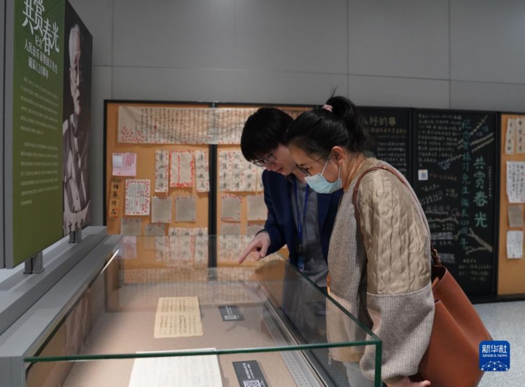 4月23日,“读书这么好的事——来手稿主题馆共度世界读书日”系列活动在上海图书馆东馆举行,手稿展的策展人员向观众介绍展出的贺渌汀音乐作品手稿。