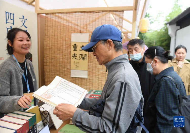 4月23日,在浙江杭州,人们在汇集了数十家民营书店和出版社的“宋韵书街”参观选购。