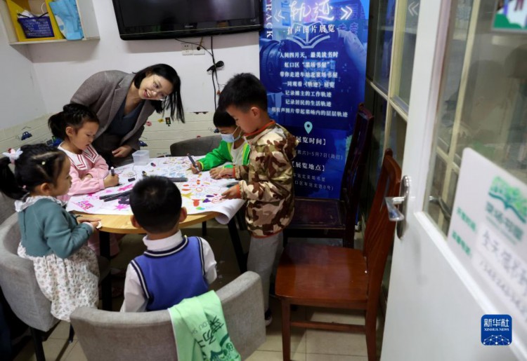4月22日,车站北菜市场的书屋举办展览和少儿阅读绘画等活动,迎接“世界读书日”。
