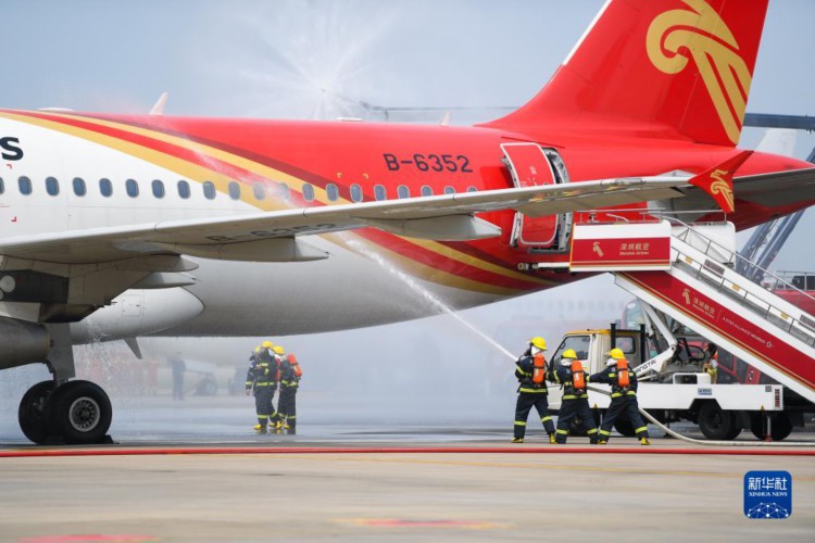 4月23日,在深圳机场举行的演练中,航空器模拟因机械故障导致右发动机起火,消防员进行灭火。 当日,“守护2023”深圳宝安国际机场应急救援综合演练在深圳举行。此次演练内容按照民航局印发的《民航跨部门联合实战化应急演练工作指南》进行设置,包括航空安保威胁信息接收与处置、空中疑似爆炸物处置与地面救援力量快速响应、响应升级与应急救援指挥体系搭建、跨部门联合响应、海上应急集结、外部力量增援、航空器搜排爆与疑似爆炸物处置、事件调查、航空器搬移等18个课目,有13家单位共300余人参与演练。 新华社记者 毛思倩 摄