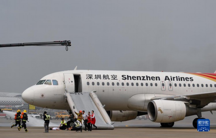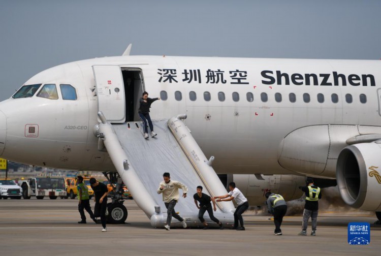 4月23日,在深圳机场举行的演练中,航班乘客和机组人员模拟进行紧急撤离。 当日,“守护2023”深圳宝安国际机场应急救援综合演练在深圳举行。此次演练内容按照民航局印发的《民航跨部门联合实战化应急演练工作指南》进行设置,包括航空安保威胁信息接收与处置、空中疑似爆炸物处置与地面救援力量快速响应、响应升级与应急救援指挥体系搭建、跨部门联合响应、海上应急集结、外部力量增援、航空器搜排爆与疑似爆炸物处置、事件调查、航空器搬移等18个课目,有13家单位共300余人参与演练。 新华社记者 毛思倩 摄