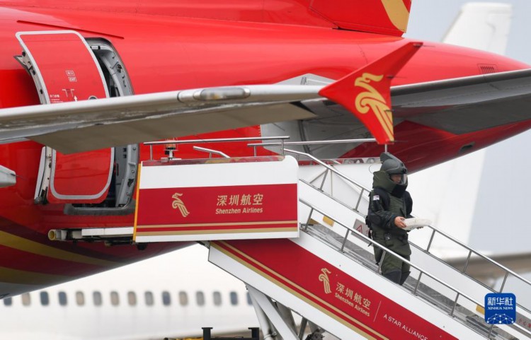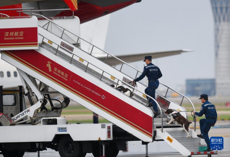 4月23日,在深圳机场举行的演练中,警方对航空器进行模拟搜排爆工作。 当日,“守护2023”深圳宝安国际机场应急救援综合演练在深圳举行。此次演练内容按照民航局印发的《民航跨部门联合实战化应急演练工作指南》进行设置,包括航空安保威胁信息接收与处置、空中疑似爆炸物处置与地面救援力量快速响应、响应升级与应急救援指挥体系搭建、跨部门联合响应、海上应急集结、外部力量增援、航空器搜排爆与疑似爆炸物处置、事件调查、航空器搬移等18个课目,有13家单位共300余人参与演练。 新华社记者 毛思倩 摄