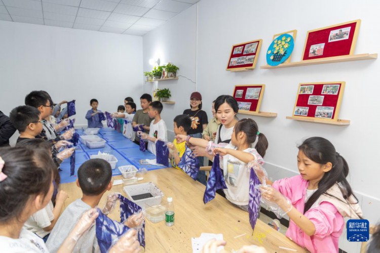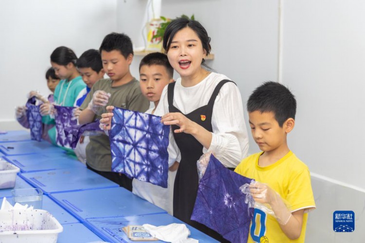 4月22日,在重庆市丰都县名山街道,来自名山街道中心幼儿园的老师在给孩子们上扎染课。 近年来,重庆市丰都县通过构建“共青团+社区教育学校+社会组织+志愿者”的运行机制,常态化为留守儿童开展科学体验、文体活动、社会实践等服务,丰富孩子们的课余生活。 新华社记者 黄伟 摄
