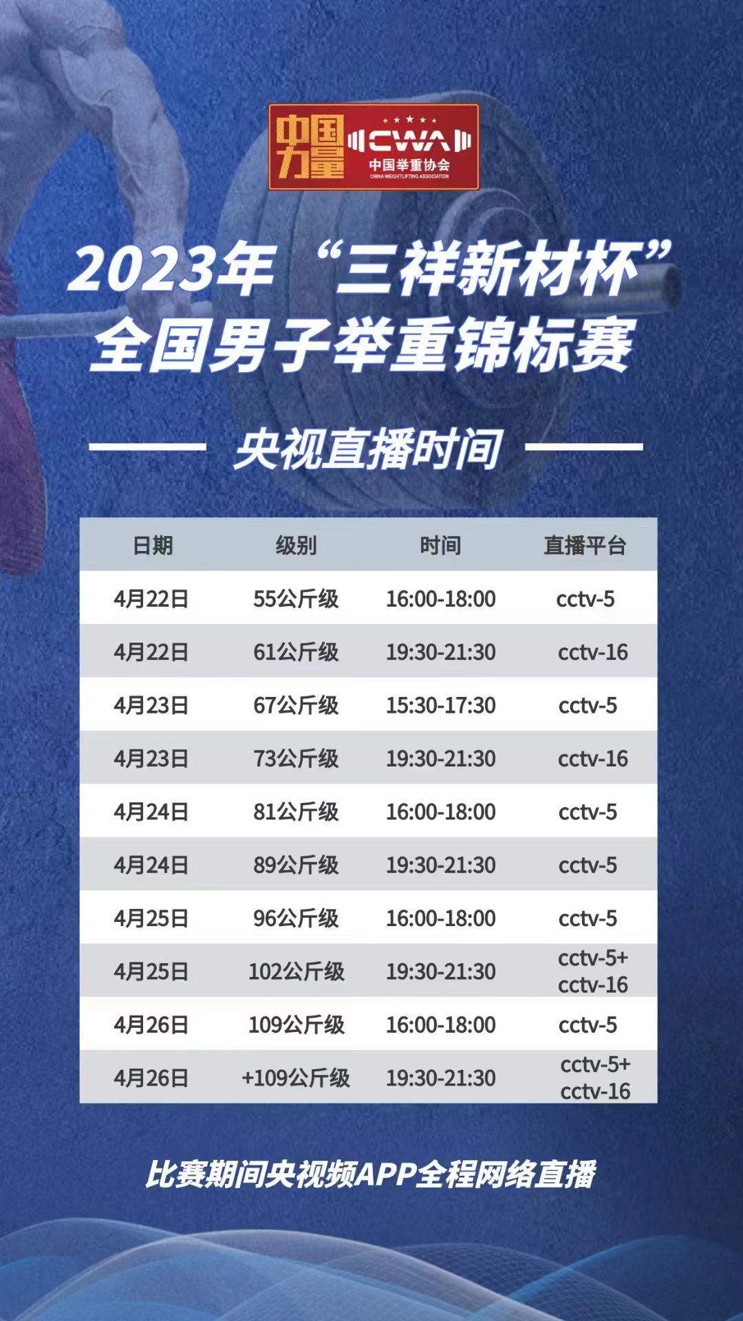 4月22日—26日,2023年全国男子举重锦标赛将在福建福州的省青少年体育学校体育馆举行。