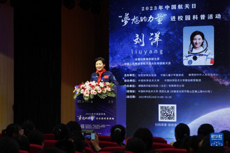当日,2023年中国航天日“梦想的力量”进校园科普活动在安徽省合肥市中国科学技术大学举行。活动邀请航天员刘洋向学生介绍中国载人航天的辉煌成就,分享个人飞天梦想与成长故事,为学生播下梦想的种子。