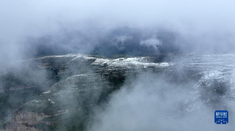 这是4月24日在河北省沙河市西部山区拍摄的云海景观(无人机照片)。 当日,受雨雪天气影响,河北省沙河市西部太行山区出现云海景观。层层云海悬浮在峰林沟壑间,与山岭上的积雪相映成趣,景色壮美。 新华社记者 牟宇 摄