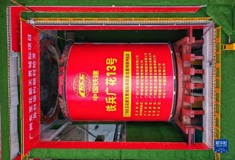 4月24日,广花城际“铁兵广花13号”盾构机始发现场(无人机照片)。 当日,广(广州东)花(花都天贵)城际铁路全线首台盾构始发,中铁十一局“铁兵广花13号”盾构机开始执行白云城市中心至白方盾构井区间右线隧道掘进任务。 作为粤港澳大湾区城市轨道交通线网的骨干线路,广花城际将和广州地铁十八号线、二十二号线、芳白城际及南珠(中)城际一起联通大湾区西岸重要区域和交通枢纽。 新华社记者 刘大伟 摄