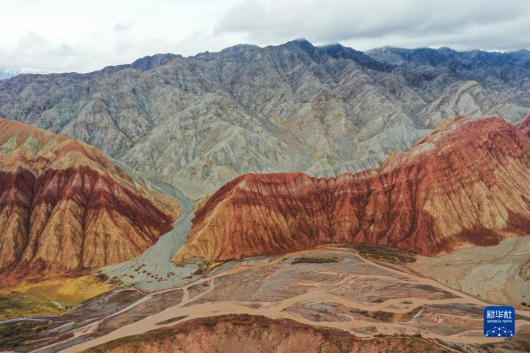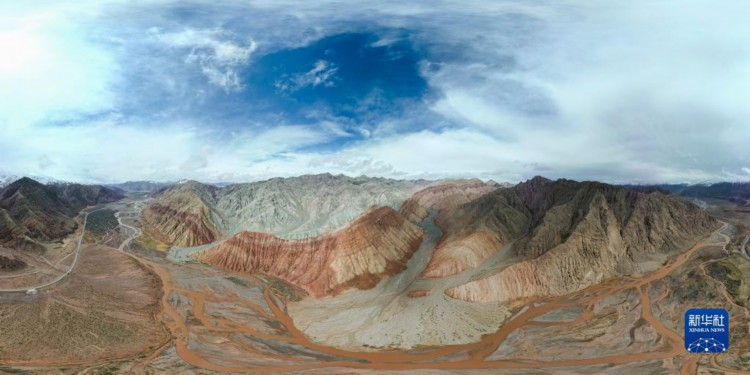 4月26日拍摄的天山-昆仑山交汇处(无人机全景照片)。