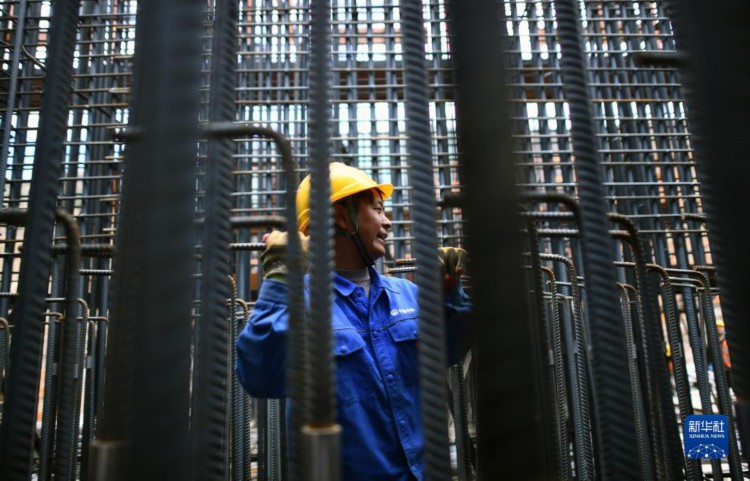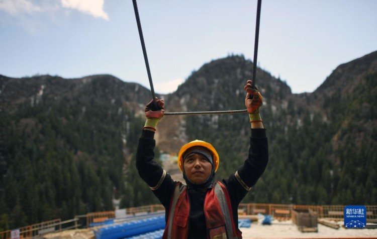 4月26日,中铁十一局施工人员在同赛公路扎毛河特大桥项目现场作业。
