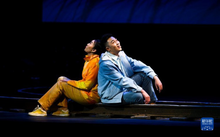 4月27日,演员在话剧《天边的草原》中表演。