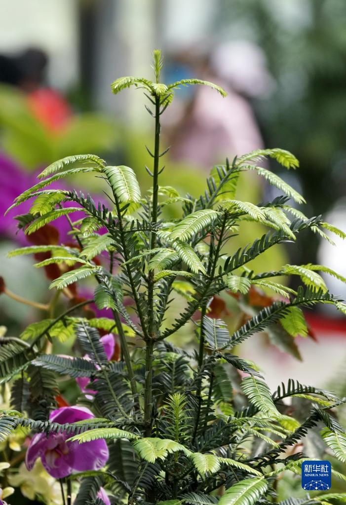 这是4月27日在国家植物园温室内拍摄的蓖子三尖杉。 2022年4月18日,国家植物园在北京正式揭牌。如今,国家植物园已完成植物种类资源本底调查,共收集世界各地的植物1.7万余种,其中珍稀濒危植物近千种,收藏植物标本突破300万份。 新华社记者 李欣 摄