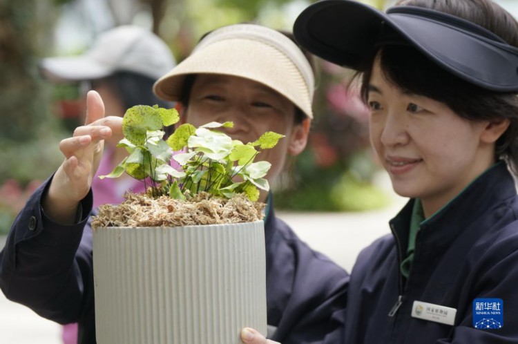 4月27日,国家植物园的植物专家在观察荷叶铁线蕨的生长情况。 2022年4月18日,国家植物园在北京正式揭牌。如今,国家植物园已完成植物种类资源本底调查,共收集世界各地的植物1.7万余种,其中珍稀濒危植物近千种,收藏植物标本突破300万份。 新华社记者 李欣 摄