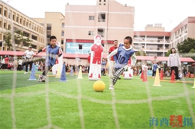 近年来,翔安区足球事业取得了长足的发展。目前,翔安区有12所“全国足球特色幼儿园”,翔安教育集团海丝幼儿园就是其中之一。该幼儿园老师张立宏告诉记者,园方根据孩子们的年龄,设置了不同的课程,“小班孩子主要是让他们熟悉足球;中班孩子就到了兴趣拓展的阶段,要充分用足球的魅力吸引他们;大班孩子则开始增加竞技元素。”