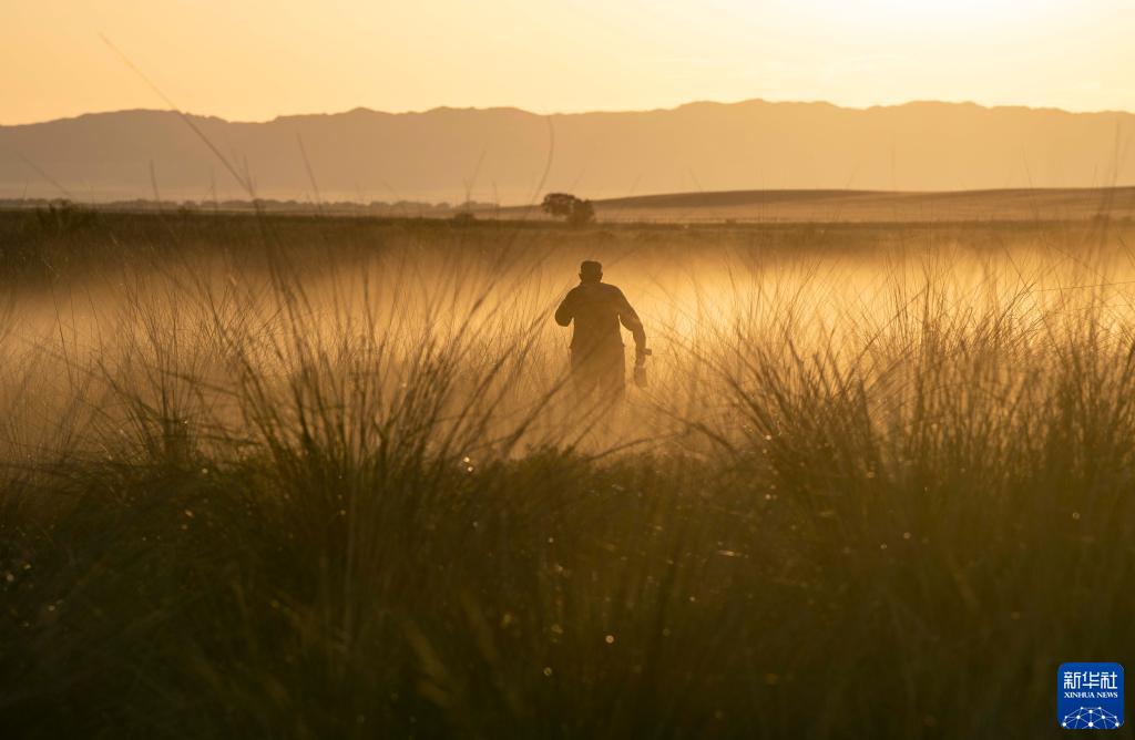 为国巡边50余年的魏德友老人在中哈边境新疆萨尔布拉克草原上放牧巡边(2021年6月8日摄)。