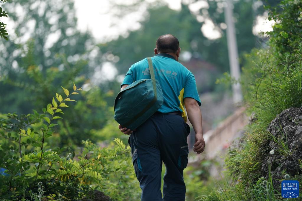 在山西省长治市壶关县大峡谷镇,邮递员赵月芳走在送件的小路上(2022年7月14日摄)。