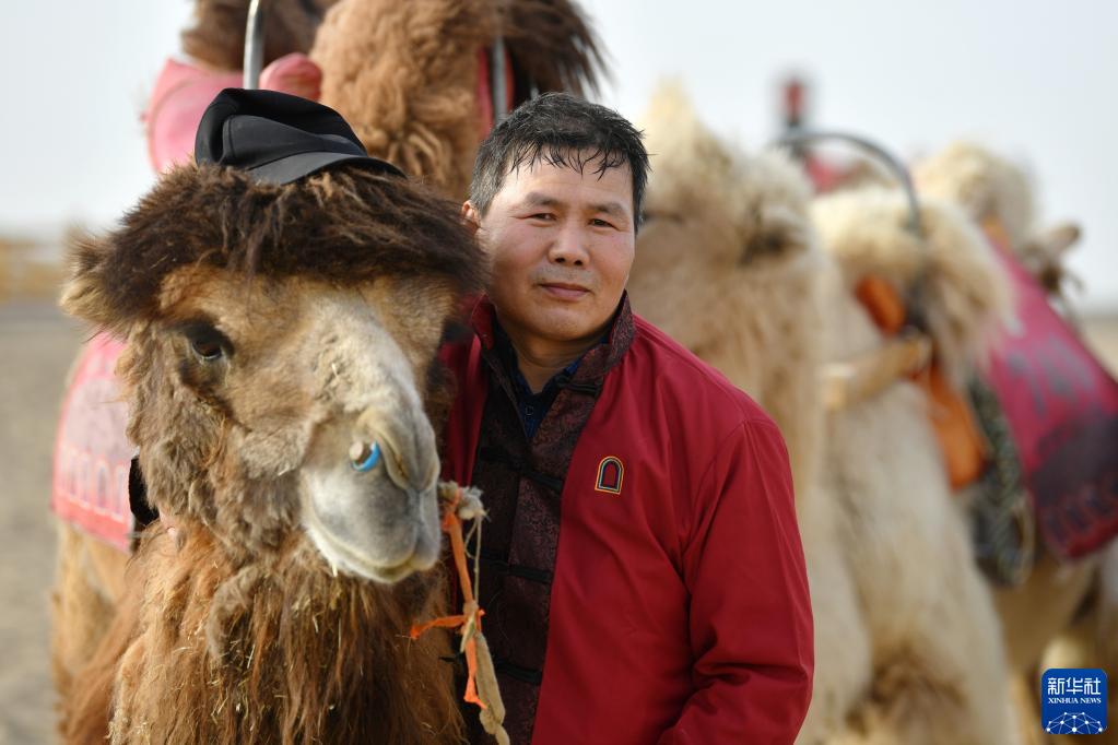曹文华和编号“414”的领头骆驼合影(4月24日摄)。 金色的鸣沙山上响起阵阵驼铃声,编号“414”的领头骆驼和51岁的牵驼人曹文华一起带领着驼队,驮着游客,朝连绵起伏的沙丘深处走去。 骑着骆驼穿行大漠,遥想丝绸之路繁华盛景,是游客在甘肃敦煌的重要体验项目。在距敦煌鸣沙山月牙泉景区最近的月牙泉村,村民们驯养着2000多峰骆驼,编有700多个驼号,这些特殊的“员工”每天轮流在鸣沙山月牙泉景区“上班”。 “从前,骆驼是丝绸之路上重要的交通工具;现在,我们的骆驼已变成敦煌丝路旅游上的重要一环,为游客带来不一样的体验,也是我们重要的增收手段。”月牙泉村村民曹文华一边走一边向游客介绍。 “五一”假期,敦煌丝路游颇具人气,这些骆驼每天更忙碌也更规律——早晨六点多“上班”,轮流休息,傍晚七点多“下班”。蜿蜒的驼队在驼道上驮着游客在沙漠中漫步,悠长的驼铃伴着游客的欢声笑语,成为鸣沙山月牙泉景区一道优美的风景线。 “今年敦煌的旅游旺季提前到来,我们也提前筹划,在很多方面进行了提质升级,希望能带给游客更好的体验。”鸣沙山月牙泉景区服务中心主任李瑛说。 据介绍,截至4月29日,敦煌市内鸣沙山月牙泉等六大景区今年已累计接待游客60万人,同比增长448.72%,比2019年同期增长37.75%。 新华社记者 方欣 摄 |