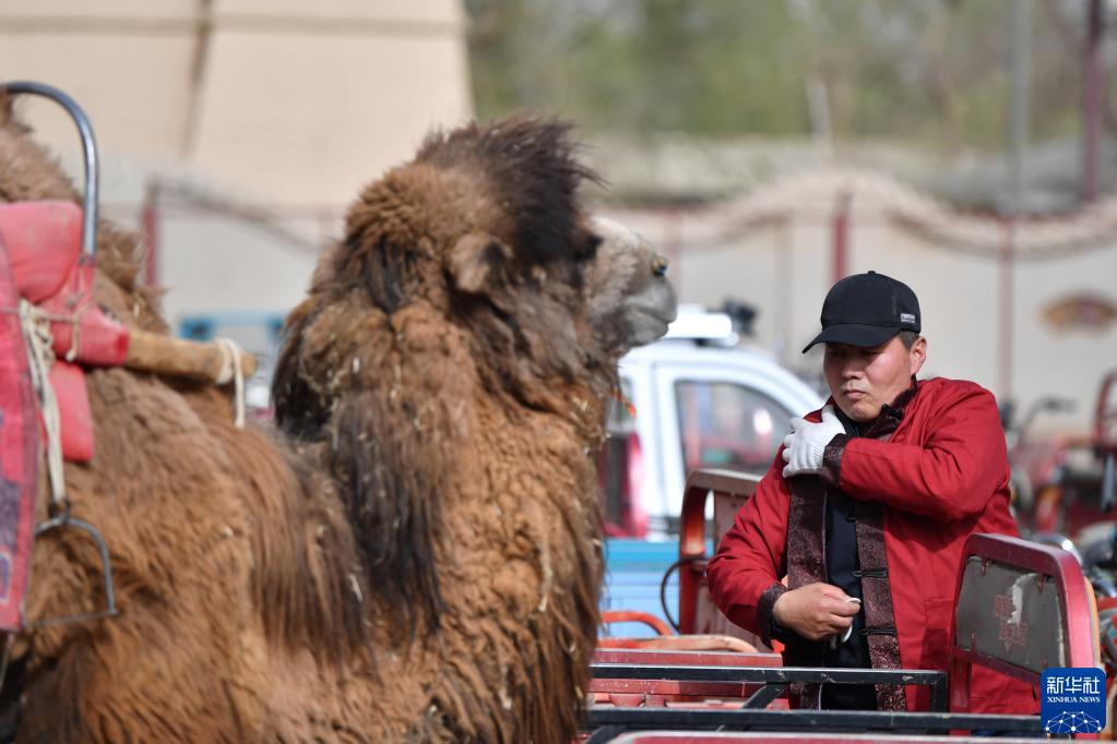 曹文华换上景区工作服准备工作(4月24日摄)。 金色的鸣沙山上响起阵阵驼铃声,编号“414”的领头骆驼和51岁的牵驼人曹文华一起带领着驼队,驮着游客,朝连绵起伏的沙丘深处走去。 骑着骆驼穿行大漠,遥想丝绸之路繁华盛景,是游客在甘肃敦煌的重要体验项目。在距敦煌鸣沙山月牙泉景区最近的月牙泉村,村民们驯养着2000多峰骆驼,编有700多个驼号,这些特殊的“员工”每天轮流在鸣沙山月牙泉景区“上班”。 “从前,骆驼是丝绸之路上重要的交通工具;现在,我们的骆驼已变成敦煌丝路旅游上的重要一环,为游客带来不一样的体验,也是我们重要的增收手段。”月牙泉村村民曹文华一边走一边向游客介绍。 “五一”假期,敦煌丝路游颇具人气,这些骆驼每天更忙碌也更规律——早晨六点多“上班”,轮流休息,傍晚七点多“下班”。蜿蜒的驼队在驼道上驮着游客在沙漠中漫步,悠长的驼铃伴着游客的欢声笑语,成为鸣沙山月牙泉景区一道优美的风景线。 “今年敦煌的旅游旺季提前到来,我们也提前筹划,在很多方面进行了提质升级,希望能带给游客更好的体验。”鸣沙山月牙泉景区服务中心主任李瑛说。 据介绍,截至4月29日,敦煌市内鸣沙山月牙泉等六大景区今年已累计接待游客60万人,同比增长448.72%,比2019年同期增长37.75%。 新华社记者 方欣 摄 |