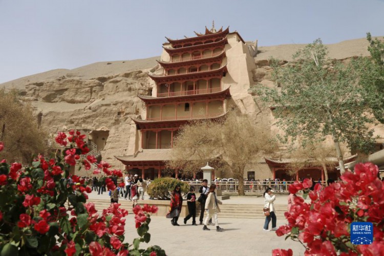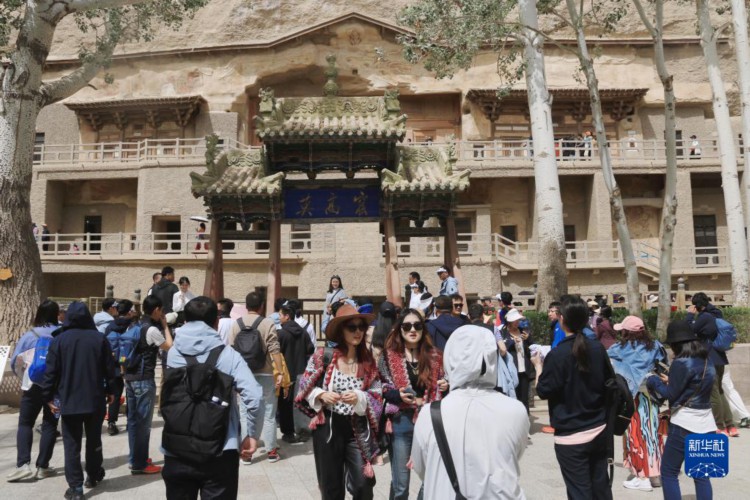 4月25日拍摄的莫高窟窟区(无人机照片)。