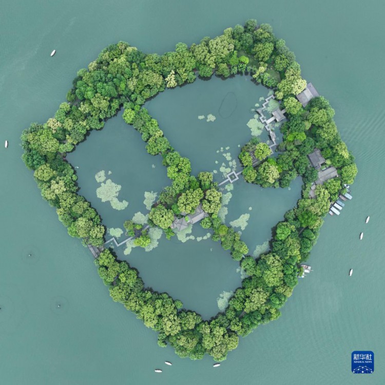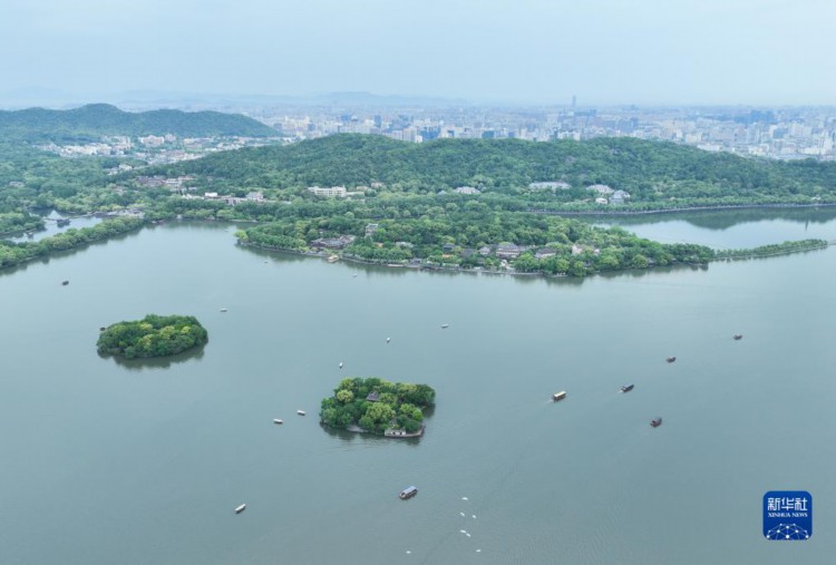 5月3日,游客在杭州西湖乘船游玩(无人机照片)。 “五一”小长假期间,人们来到各地景区游玩,乐享假期。 新华社记者 翁忻旸 摄