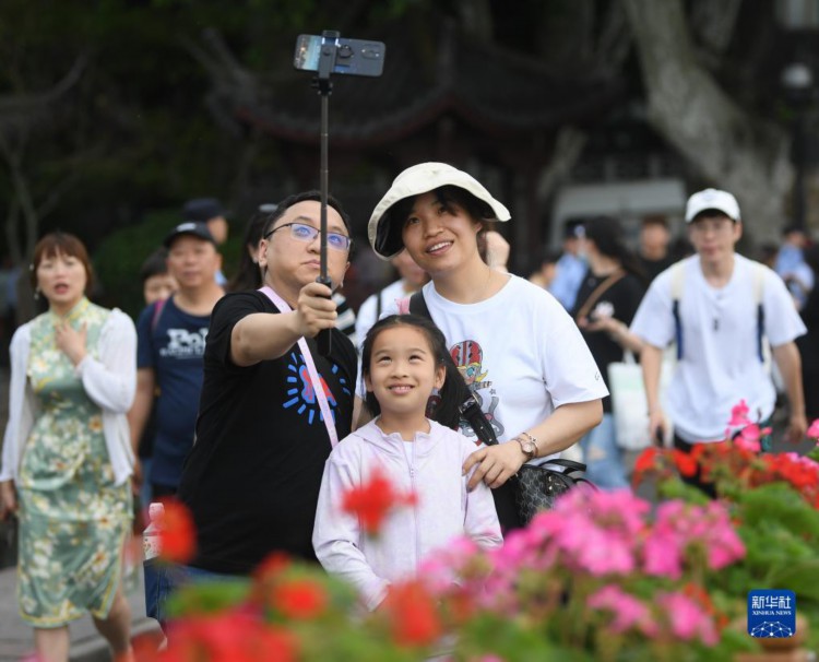 5月3日,游客在福州西湖公园游玩。 “五一”小长假期间,人们来到各地景区游玩,乐享假期。 新华社记者林善传摄