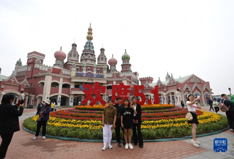 5月3日,游客在哈尔滨中央大街游玩。 “五一”小长假期间,人们来到各地景区游玩,乐享假期。 新华社记者 张涛 摄