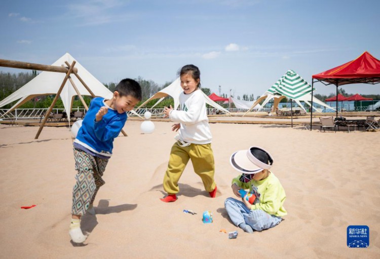 5月3日,游客在宁夏灵武市郝家桥镇胡家堡村的露营地游玩。 “五一”小长假期间,人们来到各地景区游玩,乐享假期。 新华社记者 杨植森 摄