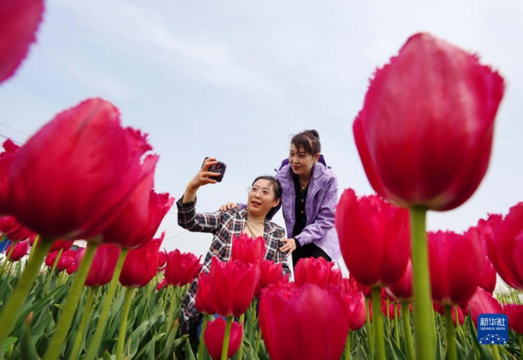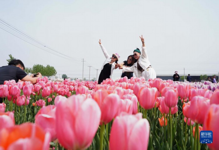 5月3日,游客在河北省滦南县东黄坨镇闫庄户村郁金香种植基地拍照。 “五一”小长假期间,人们来到各地景区游玩,乐享假期。 新华社记者 杨世尧 摄