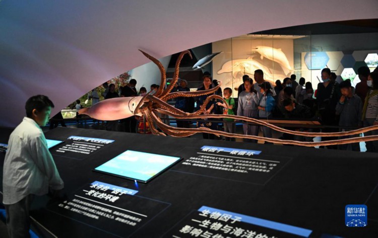 5月3日,游客在位于天津市滨海新区的国家海洋博物馆“今日海洋”展厅参观。 “五一”小长假期间,人们来到各地景区游玩,乐享假期。 新华社记者 赵子硕 摄