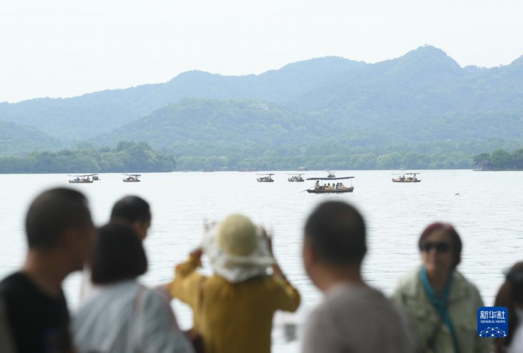 5月3日,游客在杭州西湖乘船游玩。 “五一”小长假期间,人们来到各地景区游玩,乐享假期。 新华社记者 翁忻旸 摄