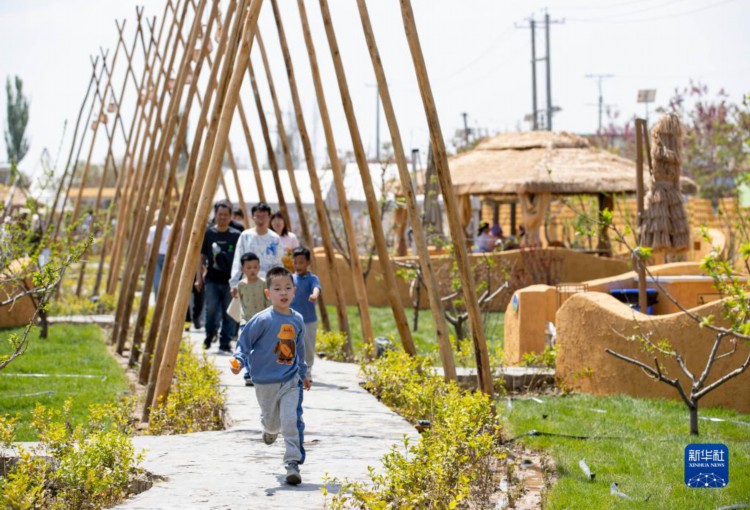 5月3日,游客在宁夏灵武市崇兴镇中渠村游玩。 “五一”小长假期间,人们来到各地景区游玩,乐享假期。 新华社记者 杨植森 摄