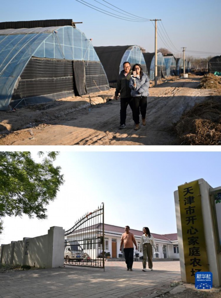拼版照片:上图为吕欣和丈夫冯爱喜通过直播介绍自家种植蓝莓的大棚(2022年12月6日摄);下图为吕欣和丈夫冯爱喜一起走出家庭农场(5月3日摄)。 整个“五一”假期,“85后”的吕欣没有休息,每天在家庭农场的大棚中忙碌。她是天津市西青区辛口镇一位从事蓝莓种植的“新农人”,也是十里八乡有名的“蓝妹妹”。 吕欣想发展的农业不是“面朝黄土背朝天”的传统农业,而是科技含量和附加值更高的现代都市型农业。 作为辛口镇种植蓝莓的第一人,吕欣也是在经历了数次失败后,终于在天津的盐碱地上种出酸性土壤中才能存活的蓝莓。走进吕欣和丈夫冯爱喜共同经营的开心家庭农场,一排排蓝莓栽种在盆中;特殊调配的营养液搭配上脉冲式滴灌浇水,实现精准灌溉和精准施肥;在手机上就可以实时监测并调节大棚内的温度、湿度…… 目前,吕欣一共种植了50多亩的蓝莓,她还开设短视频账号积极拓展销售市场。吕欣说:“我现在每天的工作就是把这些蓝莓种好、卖好、做成品牌,下一步还要吸引乡亲们一起种,走规模化、产业化的路子。” 新华社记者 李然 摄 |