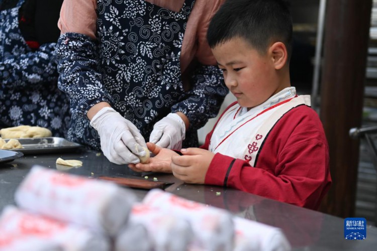5月4日,小朋友学习制作“立夏饼”。 临近立夏节气,浙江省杭州市临平区塘栖镇丁山河村的村民们做米塑“立夏狗”、腌灰鸭蛋、搭土灶蒸“野米饭”等,用江南水乡传统的民俗迎接初夏。 新华社记者 黄宗治 摄 |