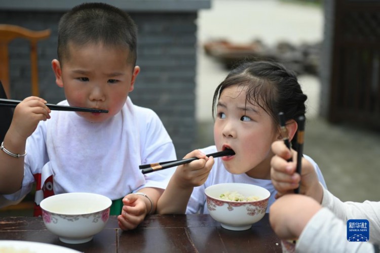 5月4日,小朋友品尝“野米饭”。