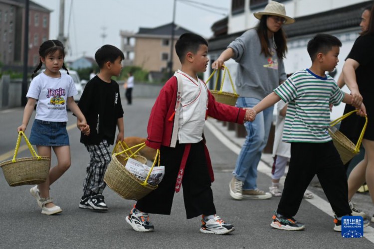 临近立夏节气,浙江省杭州市临平区塘栖镇丁山河村的村民们做米塑“立夏狗”、腌灰鸭蛋、搭土灶蒸“野米饭”等,用江南水乡传统的民俗迎接初夏。