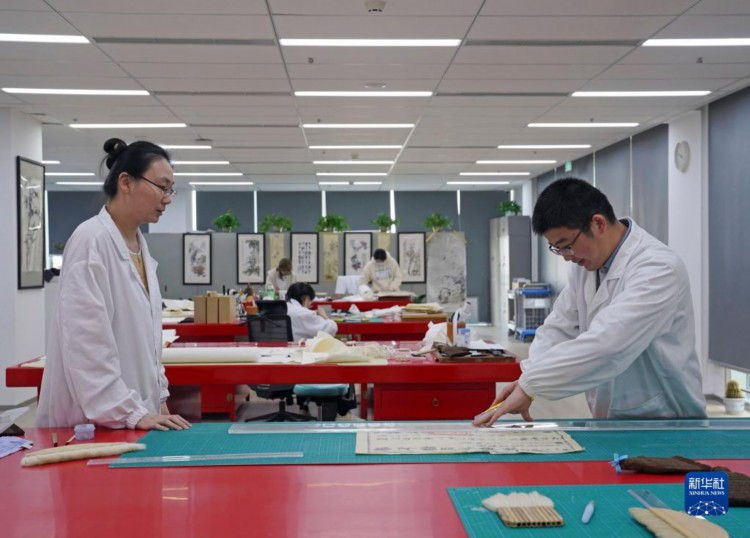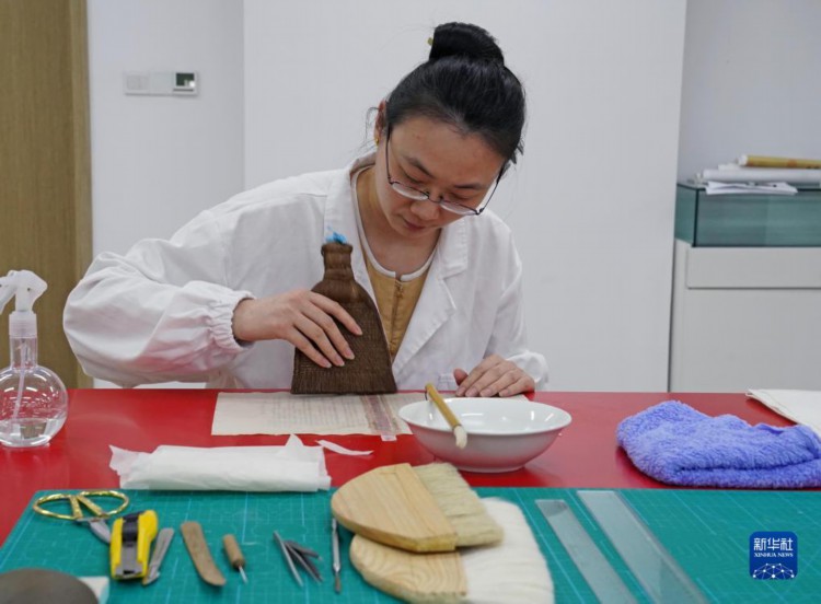 4月28日,在上海市档案馆的保护技术部,年轻的档案修复师们在工作中。 近年来, 在上海市档案馆,“80后”“90后”青年档案人才活跃在档案保管、档案修复、展陈策划、查档接待、档案数字化转型等领域。他们埋头“故纸堆”,从一张张地契、一本本史书、一张张旧照片中搜寻、整理、展示上海的“城市记忆”。 新华社记者 刘颖 摄