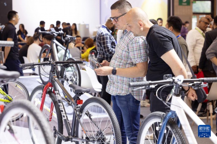 5月5日,参观者在第31届中国国际自行车展览会上观看展品。